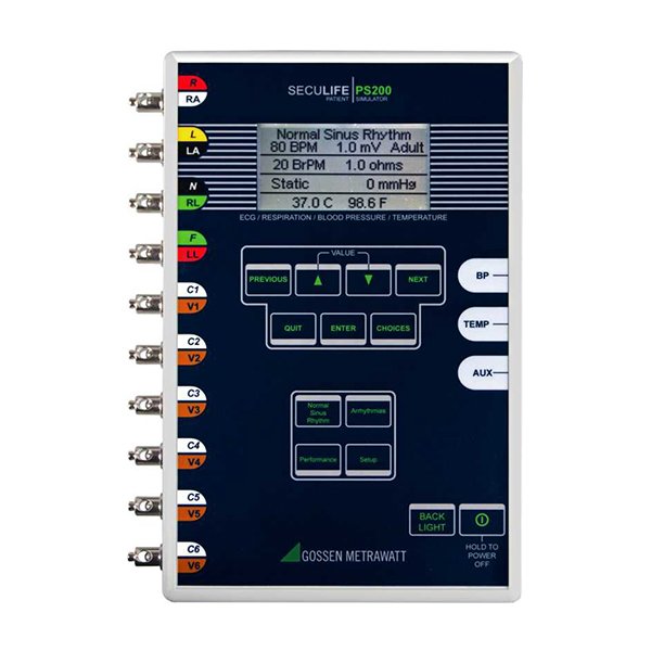 患者模拟器的其他决定性优势包括突出的易用性和多用途性。连续性测试等,也可以使用SECULIFE PS200进行。这种体积小,性能高的仪器拥有许多功能并且重量轻便于携带,是您测试设备的必备产品。